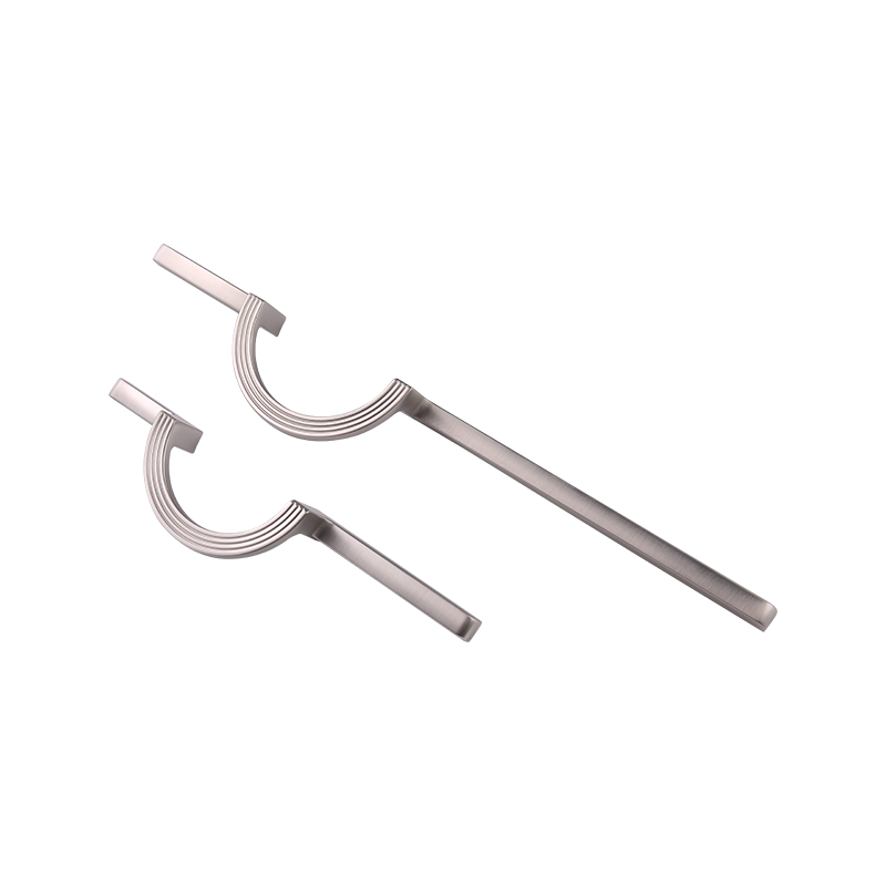 K635 96 mm/256 mm Rozstup diery Zinok Zinok Zlúčenina Dvere Rukoväť. Táto rukoväť na polmesiac má vynikajúci celkový dizajn a miernu veľkosť. Rozstup otvoru je štandardný 96 mm/256 mm, vďaka čomu je vhodný pre panely dverí skrinky na trhu. Tvar polmesiaca je jedinečný a módny a prelomí monotónny dizajn tradičných rukovätí. Je to ako jasný mesiac zabudovaný do dverí skrinky, pridáva do kuchynského priestoru dotyk jasu a je celkový dizajn rafinovanejší a elegantnejší.